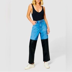 Blank NYC Jeans Blue Baxter Wide Leg Denim | Moto Faux Leather Biker