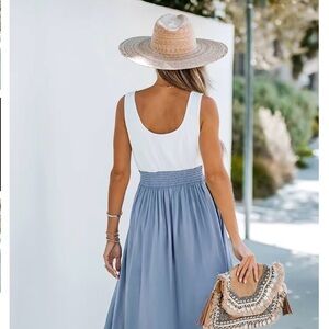 NWT Cupshe Summer Midi Ruffle Dress, White Tank Blue Bottom, Live Life On The Beach