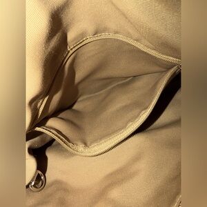 Good pre-owned condition with visible staining on the canvas, most noticeable on the front patchwork panel. The bag was gently washed and the leather conditioned; staining and perfume scent remain and is reflected in pricing.
