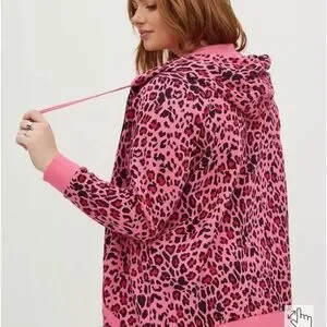 Torrid Classic Cozy Fleece Zip Up Tunic Hoodie Size 5~Pink Leopard~NWT