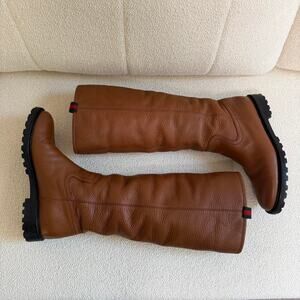 Authentic Gucci Fur Lined Tan Knee High Leather Boots Size 37 / 7 US Shelly
