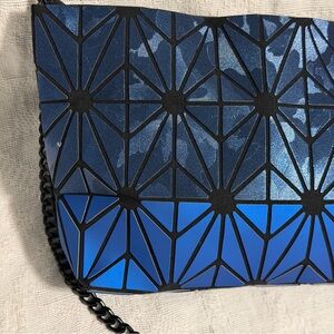 Patrizia Luca blue geometric pattern black chain shoulder bag purse