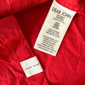 Dear John Womens Red Long Sleeve Button-Up Blouse With Floral Crochet Design Siz