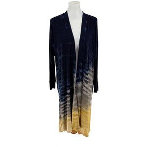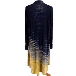 River + Sky Tie-Dye Midi Duster Cardigan Open Front Long Sleeves Navy Yellow Omb