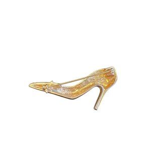 Add a sophisticated touch to your outfit with this vintage brooch featuring a red high heel shoe design. The rhinestone accents and gold-tone metal create an elegant accessory for various styles.