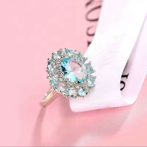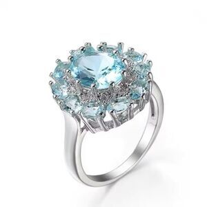Stunning Round Aquamarine Zircon Sterling Silver Statement Ring Multi Stone New