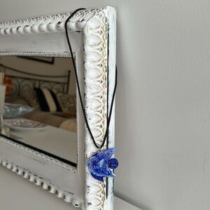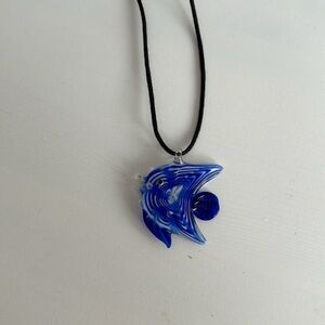 Cute little fish pendant, fish has her mouth open, she is in great condition, no nicks or cracks in the glass.