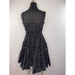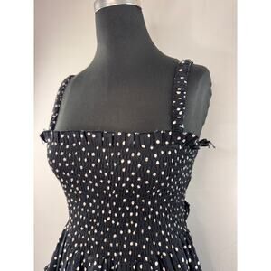 ASOS Black White Fit & Flare Dress Polka Dot Smocked Raw Cut Edges Pullover Sz 8