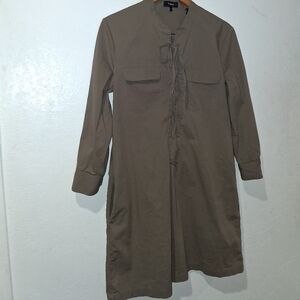 Perfect olive (Moss) dress with lace up front. Great for versatile styling, ideal for day or night. Unlined. Pullover. Flap front pockets. Side pockets. 95% Cotton 5% Elastane