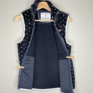 Vineyard Vines Supershep Sherpa Fleece Vest Navy Whale Print XS Coastal Prep
