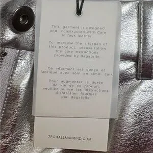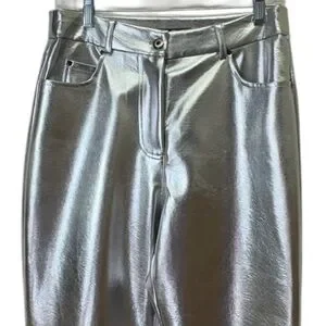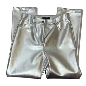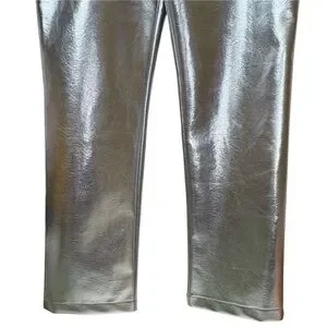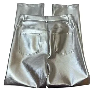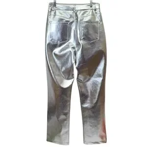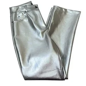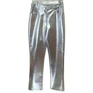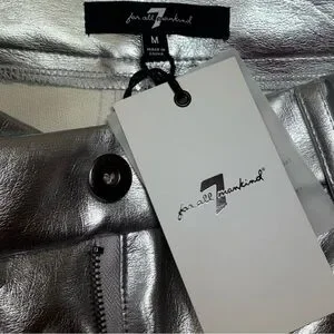 7 For All Mankind Silver Metallic Coated Straight Leg Pants Size Medium NWT