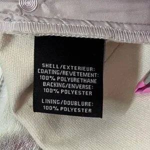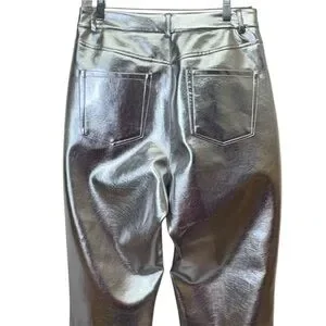 Mid-rise with straight leg fit; fabric has minimal stretch due to coated metallic finish.