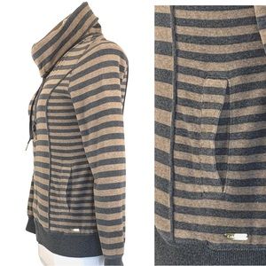 Calvin Klein Velour Striped Drawstring Turtleneck Zip Up Jacket size X-Small
