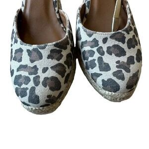 Margaux Espadrille Pique Animal Print Wedge Sandal Leopard Lace Up SZ 9