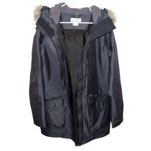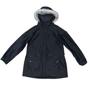 This listing is for the outer shell only — the removable inner liner is not included. Features Columbia’s Interchange system, zip front with snap placket, multiple functional pockets, and a faux-fur trimmed hood. The faux fur is in very good condition with not matting.