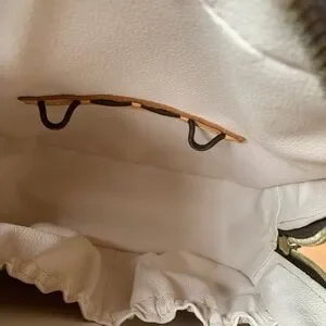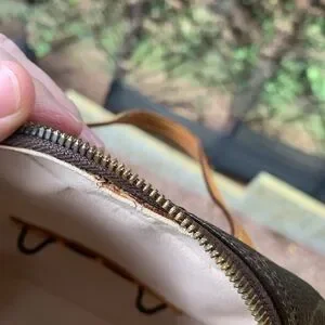 One callout: A small area of very slight minor cracking on interior at the very top inside fold. In order to see, you have to pull the material back. It can’t be noticed or seen otherwise. This is from normal aging of the glue. See pics. It is rare to find this bag without interior damage, and many sellers will not show this on pics! I prefer transparency.