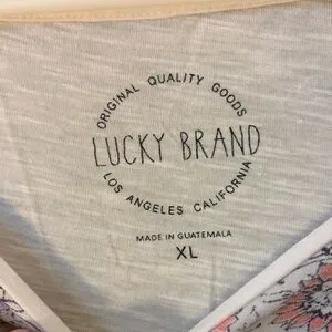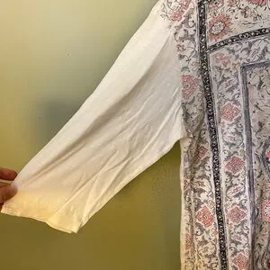 Lucky Brand Women's Intricate White and Blue Medallion 3/4 Sleeve Top Size XL