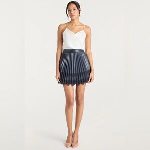 *Sold out on Cinq a Sept*. The Vegan Leather Laney Skirt combines classic pleats with intricate lace detailing for a feminine touch. This mini skirt offers versatile styling options, effortlessly transitioning from polished daytime looks to bold evening ensembles. Crafted for those who appreciate sophisticated fashion with a distinctive edge.