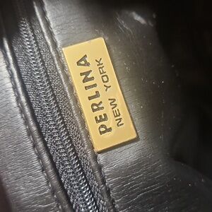 Vintage EUC Choc Brown Supple Perlina Leather Crossbody Bag, gold hardware, front and back pockets with swctions inside and black supple interior. No major flaws and a great crossbody bag. Timeless and handle drop is 22".