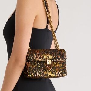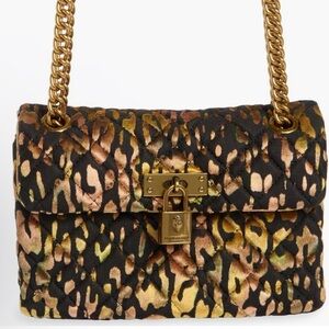 Brand new Kurt Geiger London quilted shoulder bag in a bold animal print with luxe gold-tone chain strap and signature padlock turn-lock closure.