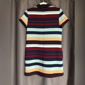 This eye-catching mini dress from Zara showcases a dynamic blend of blue, yellow, and red tones, perfect for adding a pop of color to your wardrobe. Its playful length and bold hues make it an ideal choice for casual outings or lively gatherings. Best part is that it even has pockets! Size women’s small. 🌞