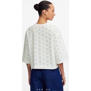 Madewell XS Eyelet Embroidered Boxy Crop Top Short Sleeve White Casual NWT $58