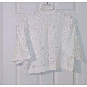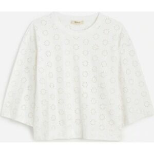 Keywords: Madewell, Eyelet top, Embroidered top, Cropped top, Boxy top, Short sleeve, White top, Casual top, Summer top, Floral top, XS, Extra Small, Round neck, Breathable