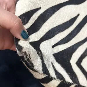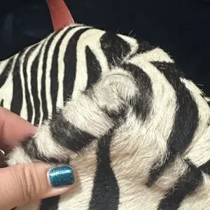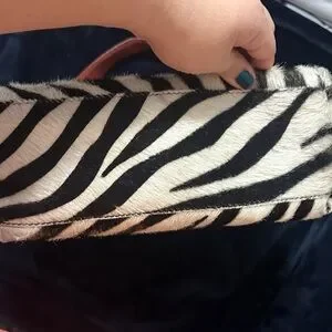Mauricio Taiuti Stylish zebra print women's bag featuring bold black and white stripes with striking red accents. Perfect for adding a touch of wild elegance to any outfit. Genuine leather made in Italy with calf fur. Some callouts ( see pictures).