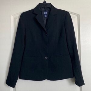 Gap Vintage Black Wool Blend Long Sleeve Button Front Blazer Coat Jacket Size 0