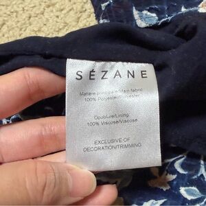 Sezane Floral Textured Navy Top 3/4 Sleeve V Neck Feminine Dainty Size 34 XS