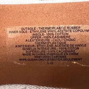These are unstructured 100% cashmere slippers. Footbed is cotton. These are so cute and easy to throw into a suitcase, or a purse for a wine night at a friends house, etc. Buy multiples and give them to your girlfriends on a girls trip or to your bridesmaids.