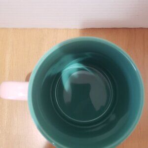 Brand new unused Disney Princess 20 oz glass mug with Tiana, Belle, and Cinderella. Outside is light pink and inside is medium green.