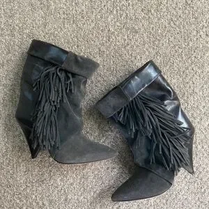 Isabel Marant Charcoal Fringed Heeled Boots