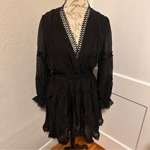NWT Haute Hippie Lynne Smocked Waist Black Mini Dress size 8