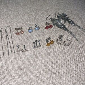 Bundle Silver Tone Stud Hoop Dangle Earrings Rose Screw Back Threaded Leaves