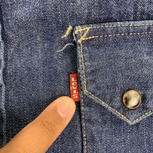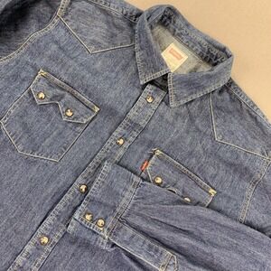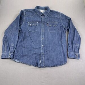 Levi's Western Denim Shirt Mens 2XL Dark Wash Snap Front Long Sleeve Red Tab