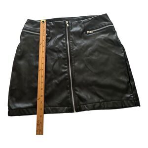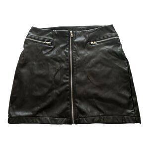 spirit halloween Black Faux Leather Frint Zip mini skirt Sz Large