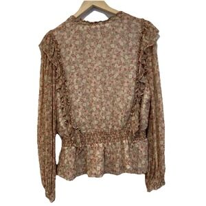 YUMI KIM Angel Eyes Clover Top Blush Floral Ruffle Smocked Waist Peplum Size L