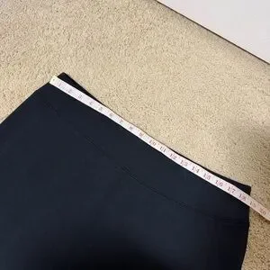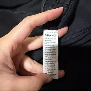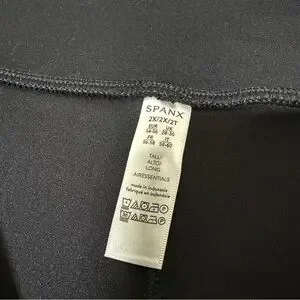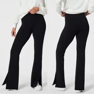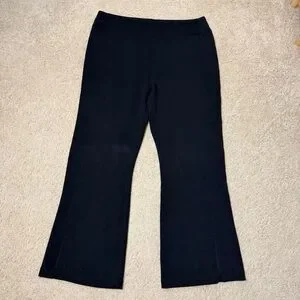 Spanx Slim Flare Leg AirEssentials Pant. Size 2X. Black color. Pull on style. Elastic waistband and stretchy material throughout. Super soft and plush feel. Side slits at leg cuffs. High rise. A material pull on the back and really faint difference in color in the front that is not noticeable (both as pictured). Great condition otherwise with no other flaws.