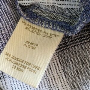 Blue and white plaid, floral button placket with hook and loop buttons.
