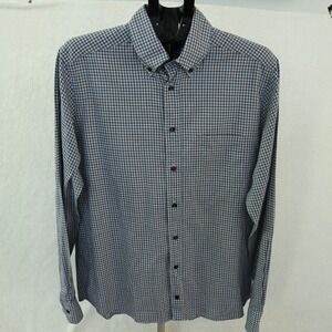 Eton Dress Shirt Men's Large L 16-41 Blue/Brown Gingham Check Contemporary Fit