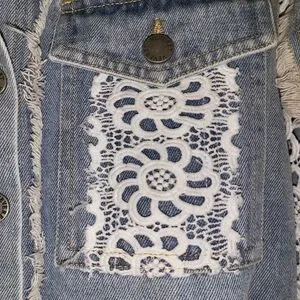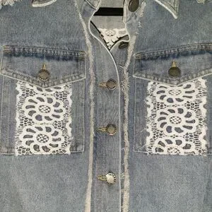 NEW Veveret Light Blue Jean Jacket with Eyelet Lace Size Small