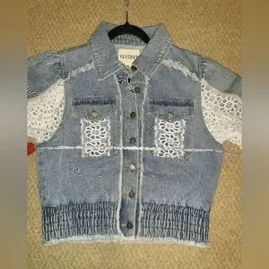 NEW Veveret Light Blue Jean Jacket with White Eyelet Lace Size Small NWOT - Boutique purchase