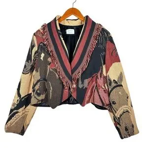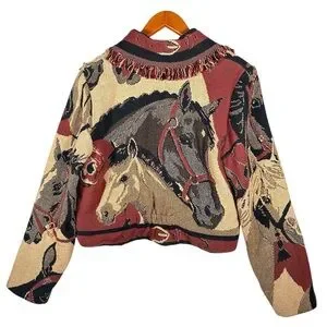 Size S SAGEBRUSH TRAPPINGS VINTAGE Cropped Horse Print Fringed Throw Blanket Western Jacket
