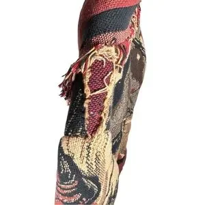 Insane vintage horse print western jacket made out of fringed woven throw blanket