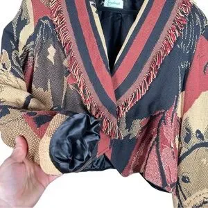 VINTAGE Cropped Horse Print Fringed Throw Blanket Western Jacket