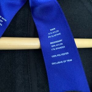 -micro fleece feeling interior, stretch wind resistant feeling exterior with some stretch.