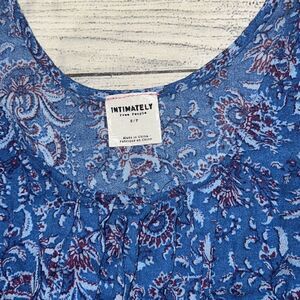 Good, preloved condition. Intimately Free People Blue Flowy Ruffle Tiered Sleeveless Paisley Floral Top. Boho. Bohemian. Oversized.