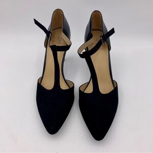 Naturalizer Black Heel Formal Dress T-Strap Faux Suede