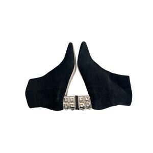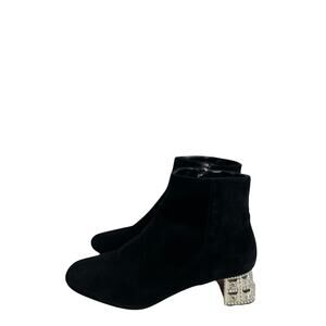 Christine Shell Paris Black Suede Ankle Boots Crystal-Embellished Heel Size EU = 40 & US = 9-9.5